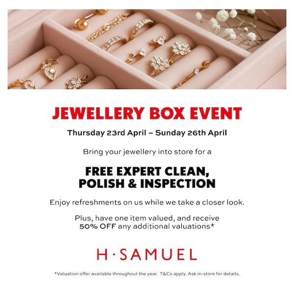Pop into H.Samuel from Thursday 23rd April to Sunday 26th April for a free expert jewellery clean, polish and inspection....